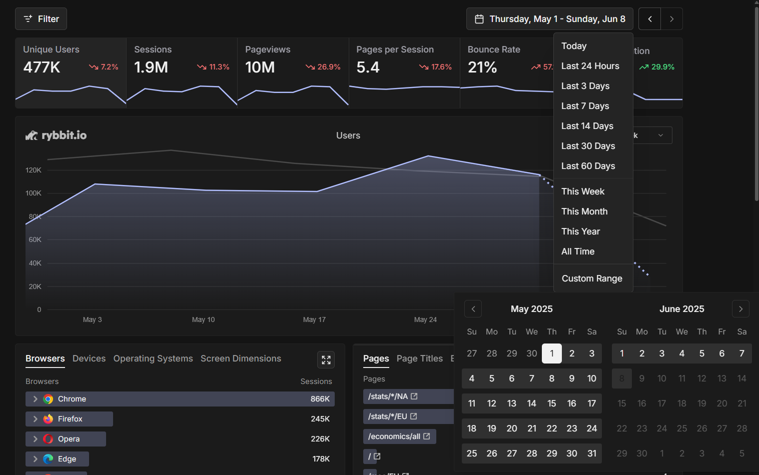 Using analytics-tube's date range filters, you can: